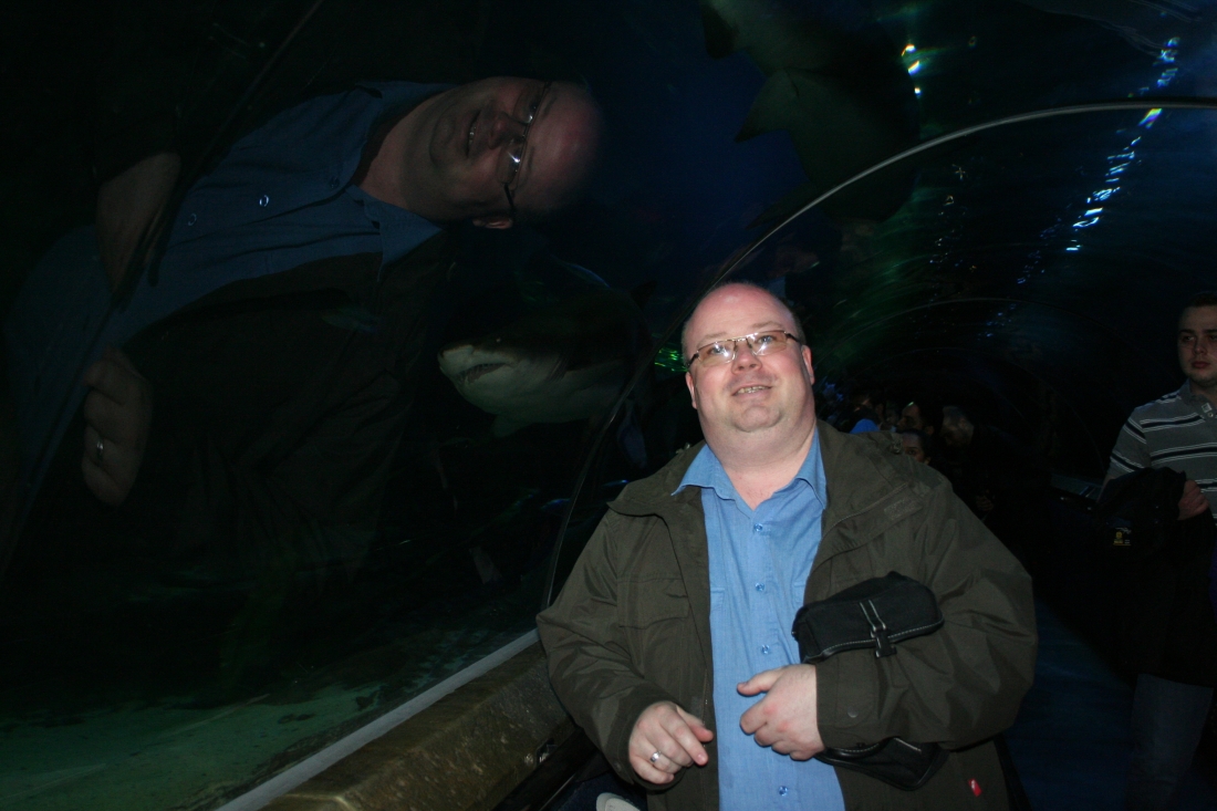Sean and shark at Deep Sea World, North Queensferry, Fife