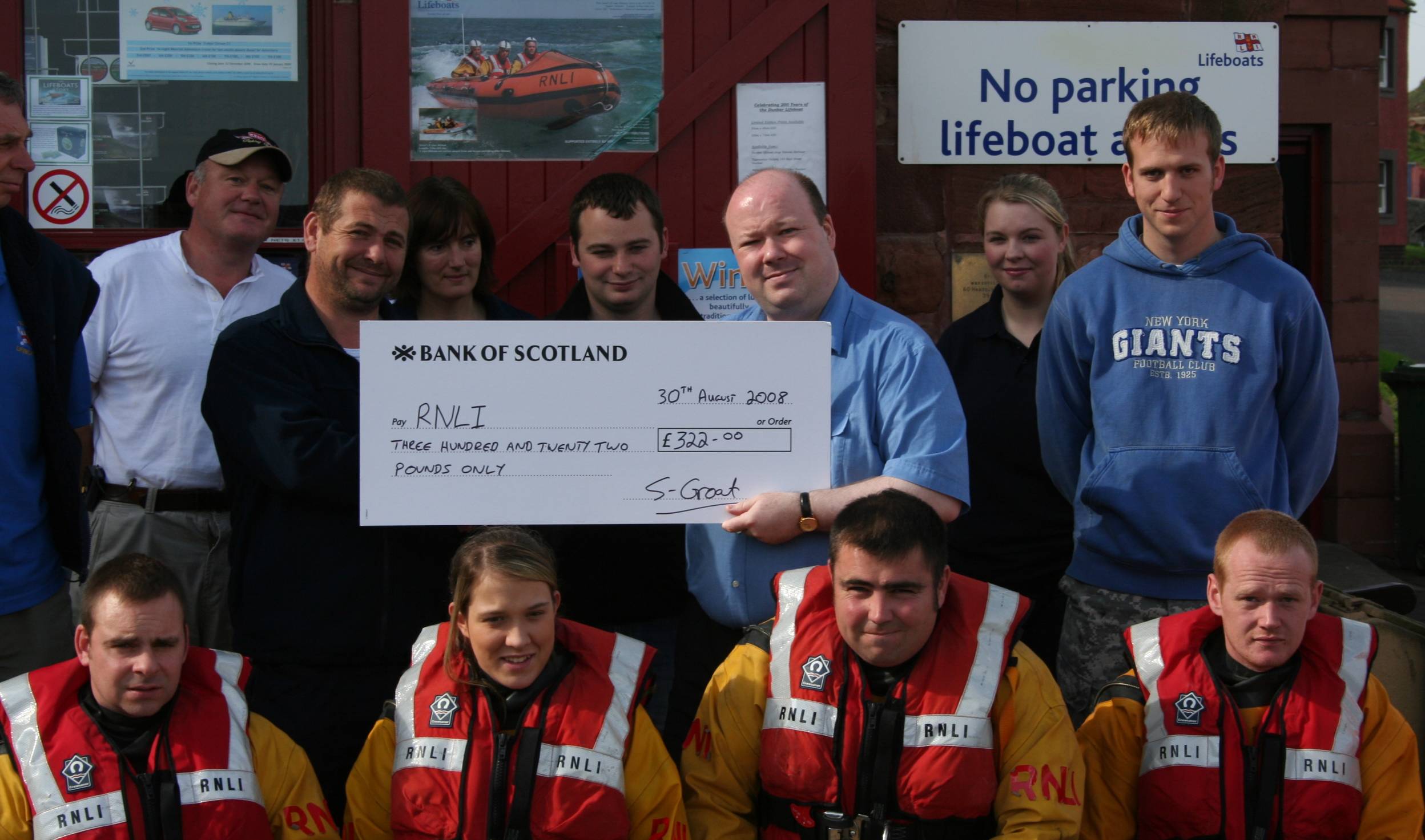 Sean Groat presents a cheque to Dunbar RNLI