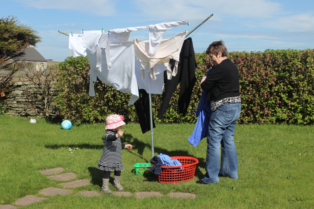Arya & Granny hanging out washing