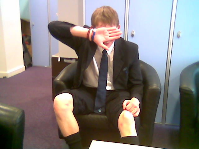 He is showing off his football wounds on his knees - apparently!